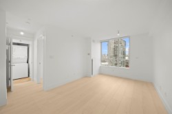 Recently renovated and ideally situated near the top floor, this elegant suite offers stunning Southwest-facing water views in Downtown. Updates include new flooring, modern blinds, and fresh paint throughout. The sleek kitchen features brand new, high-quality appliances—oven, microwave, fridge/freezer, dishwasher—plus new cabinetry and quartz countertops. The bathroom showcases a new vanity, bathtub, and tiles. Additional highlights include brand new in-suite laundry, a gas stove, central A/C, secure parking, and a storage locker. Conveniently located near Stadium Station, Rogers Arena, shops, restaurants, and fitness options. Residents enjoy premium amenities including a shared workspace, pool, jacuzzi, sauna, and gym. Schedule your private viewing today!