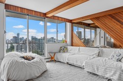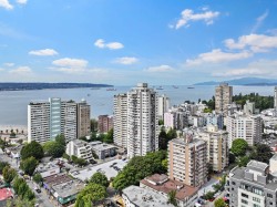 $5000 BUYERS AGENT BONUS! This is a rare opportunity to own a unique sub penthouse in a premium West End location at a sharp price.Spectacular 2 bed 2 bath condo on the 25th floor in the heart of the West End. Two units professionally combined to create a large, bright, open layout with balcony and stunning views.Quick stair access to an expansive rooftop room & balcony with true 360-degree views of the entire city. An unmatched lifestyle setup. Steps to English Bay, Lord Roberts Elementary, Stanley Park, and Denman Street with countless shops, and restaurants. Includes 2 parking stalls, 1 double large storage locker, indoor pool, rec centre, bike room and Laundry.