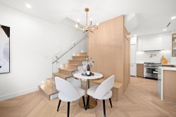 Modern design shines in this stylish 1/2 duplex in Vancouver’s desirable Arbutus neighbourhood. (Back Unit) Featuring 4 beds, 3.5 baths, an open-concept main floor with quartz countertops, brushed oak flooring, custom cabinetry with Atmosphere lighting, air-conditioning, and an electric fireplace. The upper level offers two en-suite bedrooms, including a primary with balcony. A 2-bedroom legal suite below provides great mortgage help or family use. With private fenced yard on a quiet street, this home is ideal for young and start-up families. 1 carport & 1 garage parking with EV charger included. Book your private showing today. School Catchment: Trafalgar Elementary & Prince of Wales Secondary & Kitsilano Secondary.