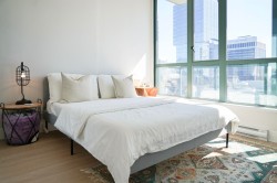 Experience modern living in this beautifully renovated (2022) 1-bedroom + den suite in Coal Harbour, one of Vancouver’s most coveted downtown locations. Perched on the 29th floor, this 590sqft home features a sleek kitchen with quartz countertops and Samsung appliances, spa-like bathroom, and laminate floors throughout. Bright south exposure fills the space with natural light, extending to a private 50 sqft balcony with sweeping city views. The versatile den offers valuable in-suite storage. Option to purchase fully furnished for a turnkey move-in or rental investment. Amenities include concierge, gym, indoor pool, party room, guest suite, and ample visitor parking. Steps to the seawall, Stanley Park, shopping, and fine dining.