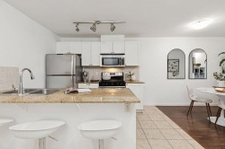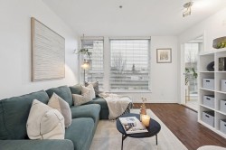 Amazing value & potential for first-time homebuyers and investors alike! A spacious 697 SqFt 1-Bedroom + Den + Enclosed Solarium in The Sugar, a boutique concrete building. Enjoy North Shore Mountain views, natural light & open Kitchen with s/s appliances, gas range, stone counters & breakfast bar. Fantastic location - Located on Hastings, you’re steps from restaurants, shopping, groceries, and transit—just 20 minutes to Downtown, PNE, Schools, Pandora & Templeton Park just blocks away. Unit 306 comes with 1 secure parking stall, Pets and rentals welcome!
