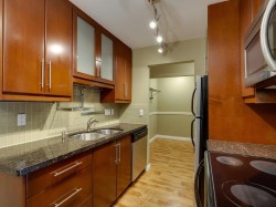 Welcome to Oakmont Place, a warm and cozy top-floor, south-facing condo on a quiet tree-lined street in the highly sought-after Fairview neighbourhood! This bright and inviting 1 bedroom + den home features new paint, updated wooden flooring, and a spacious bedroom with a charming bay window. The modern kitchen includes stainless steel appliances and elegant wood cabinetry, while the flex room offers the versatility of a home office or extra storage. Large covered balcony. Additional highlights include dedicated parking spot, a storage locker, and shared laundry facilities. Located a short walk to VGH and the Oak-VGH station on the Broadway line. Shopping along Broadway and Cambie Village. Pet-friendly building. Perfect for first-time homebuyers or investors.