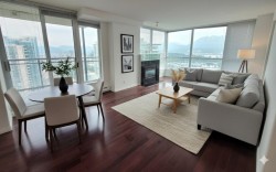 Experience luxury living with stunning views of Stanley Park, the North Shore mountains, and downtown Vancouver from this spacious and bright 3-bedroom plus den & storage, 3-bath upper unit. Enjoy the comfort of a natural gas fireplace that helps lower heating costs. Ideally located within walking distance to the park, Robson Street, Pacific Centre, the Vancouver Art Gallery, and multiple SkyTrain stations. This well-appointed residence offers amenities including a concierge, indoor pool, sauna/steam room, gym, media/party room, meeting room, plus one locker and one secured parking space. Don't miss this rare opportunity to own a waterfront property in one of Vancouver's most sought-after locations! Open House Sunday, November 30, 2-3:30pm.