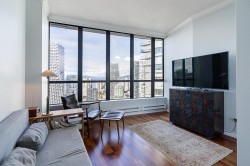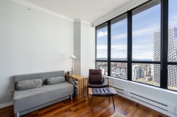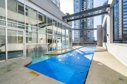 This one-of-a-kind Unit 3202 offers stunning sunset views from its SW corner perch overlooking False Creek & English Bay. This 2 bed, 2 bath + den + office sub-penthouse boasts large windows in every room, breathtaking views throughout. Kitchen features granite counters and S/S appliances. 9’ ceilings, hardwood floors and gas fireplace. Only 2 units on level 32 added privacy! Amenities include concierge, party room, indoor/outdoor pool, Jacuzzi, sauna, gym, guest suite, an elegant lobby with passenger drop-off & and an outdoor courtyard with beach volleyball court. Pets & rentals allowed. Prime location—steps to SkyTrain, dining in Yaletown, grocery shopping & the seawall. George Wainborn Park is one block away Bonus:* 2 parking 1 storage locker.