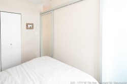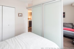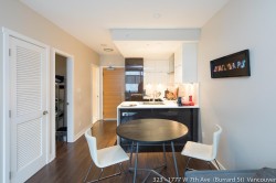 Your condo at Kits 360 awaits. Nice layout with 466 sq ft. One bedroom plus flex space than can be used as a den or storage. One parking and One locker. Kitchen has Quartz counters, Miele Gas cooktop & electric oven. Fridge & dishwasher have cabinet doors to help hide them away, designer backsplash, and under cabinet lighting. There is a Kohler Soaker tub in the bathroom to help you relax. Dark Laminate flooring. Great location, walk to the shops and restaurants on W 4th - walk to Granville Island. Easy access to downtown. Pets OK. Tenanted needs 48 hours to show.