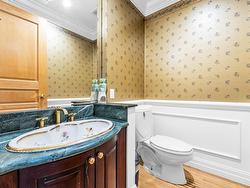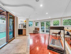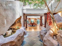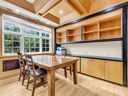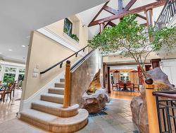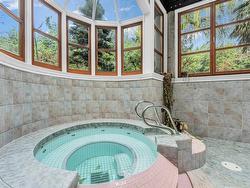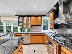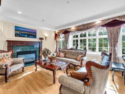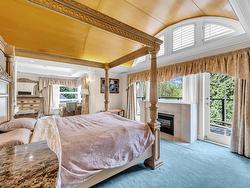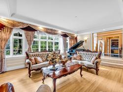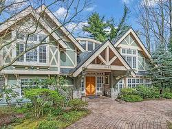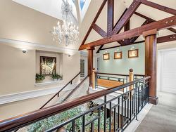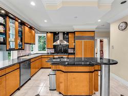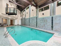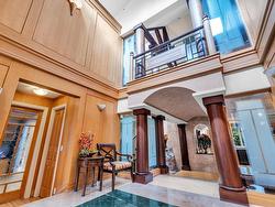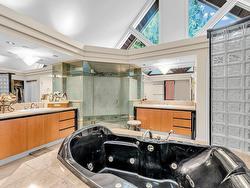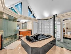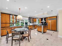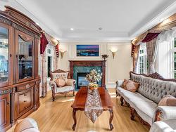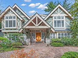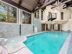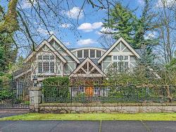 Stunning custom-built mansion in prestigious 1st Shaughnessy, showcasing exquisite craftsmanship and premium finishes. Features include a grand double-height foyer, indoor fish pond with waterfall, elegant living/dining areas, and maple hardwood flooring. The gourmet and wok kitchens are outfitted with top-tier appliances, opening to a large deck overlooking a landscaped backyard with a fish pond. Upstairs offers 4 spacious ensuite bedrooms (3 with steam showers), while the lower level includes a home theatre, gym, office, and guest suite. Additional luxuries: indoor pool, A/C, HRV, radiant heat, elevator, sauna, smart security, and 4-car garage—all set within a beautifully fenced garden.