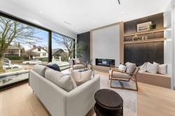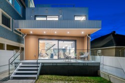 Welcome to the home where your search truly ends. This architectural masterpiece in Hastings Sunrise blends modern luxury, refined craftsmanship, and solar energy efficiency. Designed by Architrix Design Studio and built by award-winning Lat49 Builders, it showcases exceptional quality throughout. The main level features open-concept living with Crestron smart automation, Wolf appliances, custom cabinetry, a gas fireplace, and Dekton countertops. Upstairs offers three bedrooms with ensuites, including a serene primary suite with North Shore views. Enjoy a 360° rooftop deck, plus a lower-level rec room, wet bar, and home gym. A 669 sq.ft. 2-bedroom laneway home and a 1-bedroom legal suite provide ideal flexibility for family or added income. Easy access to SFU, Downtown, HYW 1.