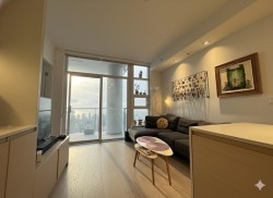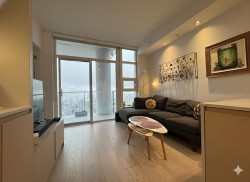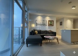 This coveted Skyfront Collection “01” residence boasts cinematic views of English Bay, captivating from sunrise to sunset in every room. The open two-bedroom plus den layout blends style and function, featuring Italian cabinetry, spa-inspired bathrooms with heated marble floors, a full Smart Home system, and air conditioning for year-round comfort. Step outside to the semi-exclusive balcony, a serene space for morning coffee, sunset cocktails, or simply soaking in the panoramic vistas. The chef’s kitchen, outfitted with Gaggenau appliances and a generous quartz waterfall island, is perfect for entertaining. The primary suite offers a luxurious ensuite with an oversized walk-in rain shower, smoked-glass accents and marble walls while the second bath features a soothing soaker tub.