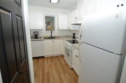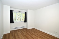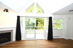 Location, Location. Bright and spacious & extremely private pent house corner unit with open floor plan, vaulted ceiling, 2 skylights, one in the foyer and one in the bathroom, kitchen window as well as extra windows above the sliding door flooding the unit with natural daylight. Feels like a detached with treed outlook. Professionally updated unit features vinyl plank flooring throughout the unit complimented with tall base, modern flat door trims, freshly painted in neutral color palate complimented with black accents including plumbing &light fixtures & hardware. White kitchen cabinets & new appliances, blinds & drapes. Well Maintained and pro active complex complete with gym & sauna. Walking distance to transit including sky train, shopping, school, restaurant and parks. Private deck!