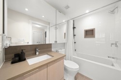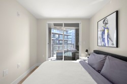 Welcome to Unit 411 at 8508 Rivergrass Drive located in the heart of the vibrant River District community. This thoughtfully designed 1 bedroom + flex home offers a functional and spacious layout with a peaceful courtyard view. The open-concept kitchen features stainless steel appliances, quartz countertops, and under-cabinet lighting, flowing seamlessly into the living room area ideal for both everyday comfort and entertaining. The versatile flex room works beautifully as a home office or extra storage. The bathroom is finished with a luxurious soaker tub and in-floor heating for year-round comfort. Enjoy unparalleled convenience with direct access to waterfront walking and hiking trails, and just steps to grocery, pharmacy, banks and restaurants. Showings after 5pm.