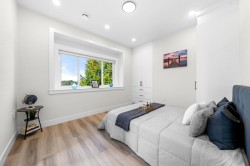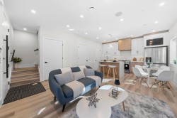 Welcome to this brand-new front duplex over 1528 sqft, expertly crafted to blend modern design with everyday comfort. The main floor showcases an open-concept layout with a sleek kitchen featuring elegant countertops, a spacious dining area, and a bright living room highlighted by expansive windows. Upstairs offers three generously sized bedrooms, including a luxurious primary suite complete with a private ensuite. The lower level includes a versatile recreation room with potential to be converted into a one-bedroom suite, ideal for rental income or multi-generational living. With high ceilings, contemporary finishes, and a sought-after location, this home presents exceptional value and endless possibilities. Open House Sunday Dec 7 2-4pm