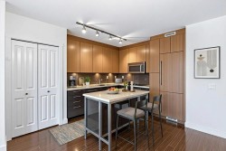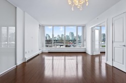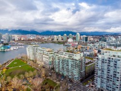 Waterfront living at The Foundry by Polygon, a concrete LEED Silver-certified building designed for the best of energy conservation, in the heart of False Creek. The bright 2-bed, 2-bath home offers a great open-concept layout with excellent bedroom separation for privacy. Enjoy floor-to-ceiling windows, high ceilings, and awesome views of the city, mountains and False Creek. The gourmet kitchen features quartz countertops, oak cabinetry, a large island, Bosch appliances. Private deck, walk-in closet, in-suite laundry, 2 parking & storage. Unbeatable location, steps to the Seawall, SkyTrain, schools, community centre, parks, Cambie shops and urban amenities. Amenities include gym, EV charging, bike storage, visitor parking, courtyard with playground, community garden.Virtually Staged!