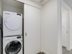 Beautiful 1 bedroom in the boutique concrete building "Elenore on Fifth" located at 5th and Main St. Offering refined finishings such as a gourmet kitchen with quart counters & back-splash, wide plank flooring throughout, integrated fridge, Wolf gas cooktop/oven/micro, Fisher Paykel d/w, LG w/d, heated floors (bath), A/C, roller blinds, in-suite storage and much more. Located minutes from Science World Skytrain station, and Broadway extension ( scheduled to open 2027). Access to the Main street corridor is at your doorstep conveniently providing all of your essential daily needs. Minutes from the vibrant Olympic Village and Seawall. Welcome to your future home. 1 parking stall and 1 bike pedestal included.This unit is like new!