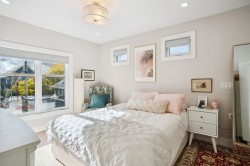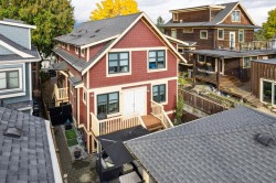 Experience the perfect blend of past and present in this exceptional south facing 1/2 Duplex by Indra Homes, set in Mount Pleasant. This home offers 3 bedrooms plus a den and 4 bathrooms across three finished levels. High-quality Fisher Paykel stainless steel integrated appliances, double drawer dishwasher, custom wood cabinetry, and quartz countertops. With hardwood floors, the comfort of radiant heating, and hot water on demand. Peace of mind comes with a private secured single garage and EV charger, and a new home warranty. Professional landscaped garden with stone patio lounging area. Upper deck includes gas bbq hookup for access and convenience any season.