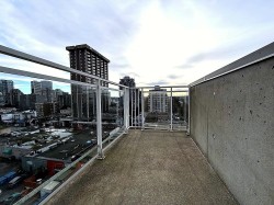 Spectacular penthouse in a modernist, boutique concrete-and-glass building, ideally located in the prime West End. This fully renovated home has been thoughtfully revamped throughout and features 2 bedrooms, 2 bathrooms, soaring 11 ft ceilings, and new flooring/finishes for a fresh, contemporary feel. Permitted in-suite laundry has also been installed for added convenience. Enjoy breathtaking views of English Bay, Burrard Inlet, Downtown, and the North Shore Mountains, with outlooks from all four sides of the building on the entire 8th floor. A rare bonus: an exclusive-use Limited Common Property (LCP) space on the same floor, designated for this unit only, perfect as an entertaining lounge, office, or art studio, complete with its own 3-piece bathroom and access to an almost 300 sq.ft.