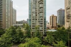 South-facing, bright and spacious studio in Lions Building in the heart of downtown Vancouver, offering the perfect blend of convenience and comfort. This bright, open-concept unit features large windows with city views, modern finishes with newer fridge (2020), sleek cabinetry, and a cozy breakfast bar and in-suite laundry. Located steps from Robson Street and Coal Harbour. This studio is ideal for first-time buyers, investors, or anyone looking for a stylish building in a prime location. The building offers secure entry, concierge services, exercise room, bike storage, one parking stall and one storage locker. Public transit, shops, restaurants, and more are right at your doorstep. Open House Sunday March 1st 2:00-4:00 PM.
