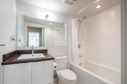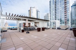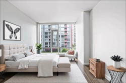 This one offers all the perks that you are looking for! Bright & spacious 1 bed + den + solarium comes with 1 parking + 1 storage locker + 1 bike locker, located at the quiet side of the building with greenery courtyard/city & peak of water views. Featuring smart efficient layout with no wasted space; floor to ceiling windows; good sized bedroom easily fits a king sized bed; versatile den and solarium can be used for office, additional storage, nursery or even a small bedroom. Great location, walk to Skytrain, Costco, Rogers Arena, restaurants, etc. everything that downtown Vancouver offers. Residents enjoy 24hr concierge, exclusive access to indoor swim pool, gym, bowling alley, sauna/steam room, rooftop terrace with bbq/hot tub and much more.