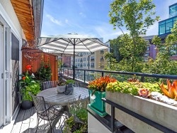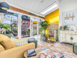 Rarely available, this distinctive 2 bed, 2 bath + office + sunroom townhome in Gastown is a true character residence — a 1993 heritage conversion of a 1926 warehouse blending industrial charm with modern sophistication. Spanning five levels, this urban loft-style townhome features original hardwood floors, exposed brick and concrete, an updated kitchen, skylight, gas fireplace, and rooftop decks with panoramic mountain, ocean, and city views. Thoughtfully maintained with new patio doors and paint (2025), resurfaced floors (2024), glass railings (2021), boiler (2019), kitchen (2018), and more. Ample storage, pet and rental friendly. Ideally located on one of Gastown’s most sought-after blocks, steps from cafés, restaurants, and boutiques.