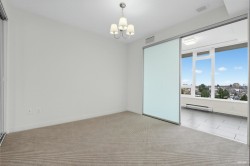 Wall Center T1, 519 sf 1 bedroom plus den corner unit. Laminated floor. Trendy kitchen cabinetry. Open concept kitchen with beautiful quartz countertops for a sophisticated look. Large windows in all rooms for increased natural light. Overseeing roof top garden on the balcony. Only floor connected to Tower 2 for accessing to the swimming pool amenity. Walking distance to daily necessity shopping on Kingsway, Center Park, skytrain station.