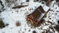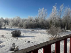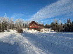 Private 60-acre retreat just 10 minutes from town on Hwy 27 -- ideal for family living, hobby farming or weekend escape. This chalet-style home offers five bedrooms, a bright, open kitchen and an upstairs loft that houses the primary suite with ensuite and a library overlooking the south-facing living and dining rooms. Property highlights include a year-round creek, greenhouse, fenced pasture and an extensive network of gravel, hiking and motorbike trails. Exceptional privacy and versatile outdoor space make this a one-of-a-kind property.