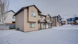 Great location just blocks to the mall and all amenities in Vernon's Harwood area! This bright, hard to find, detached Bare land Strata home with suite! Upper floor is the main living area with an island kitchen that walks out to a deck overlooking the backyard, plus 2 bedrooms and two baths. The Primary bedroom features a walk-in closet and full ensuite. Lower level is a bright above ground in-law suite of 1 bedroom and 1 bath, plus shared laundry and its own parking stall. Outside is a small easy care backyard for the kids and pets. (Strata fee $34.00/month) No Pet Restrictions! No age restrictions! This is perfect for someone needing a mortgage helper or simply a level entry suite for a family member. 3 parking spaces, including garage. This is part of a 4 home Bare Land Strata. Close to all amenities!