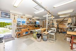 Updated house comes with a dream shop! This charming family home offers a well-designed layout with pride of ownership evident throughout. It features 3 bedrooms and 3 bathrooms, located on a quiet dead-end road just a short drive from downtown Vernon. The property includes a unique garden shed an impressive 560 sq.ft. insulated woodworking shop, perfect for hobbyists or professionals. Main highlights: Primary bedroom on main floor with walk-through ensuite. Modern kitchen with stainless steel appliances, large island, and formal dining area. Cozy living room with gas fireplace. Laundry room adjacent to a half bathroom and electric sauna. Upstairs with two bedrooms, a shared bathroom, and a versatile space for a desk or small library. Beautiful covered deck overlooking a manicured backyard with a garden shed and views of Swan Lake, city, and mountains. Large double garage, RV parking, and additional guest parking. This home seamlessly combines comfort, functionality, and scenic views, making it a wonderful place for family living, entertaining, and hobbies.