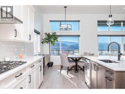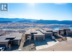 Spectacular 24-hour view! Panoramic valley and Okanagan Lake during the day and mesmerizing City of Vernon lights glittering at night. Located on a quiet cul-de-sac of only 10 homes, this townhome unit is perfect for an effortless lifestyle whether you are downsizing or just busy! The level entry main floor is designed for everyday convenience including open floor plan, primary suite & ensuite with heated floors plus second bedroom and bath and laundry! The great room includes a fabulous kitchen with quartz counters, huge island, butler’s pantry and high-end appliances! The walk-out lower offers 2 generous bedrooms, full bath, family room and loads of storage – perfect for family or guests! Nearly brand new with many thoughtful custom features through out! Soft white palette throughout enhances the view from the walls of windows and lofty ceilings on both levels! Full length, partially covered deck with automatic solar screens for sun and breezes. Full length covered patio that flows to the private greenscaped back yard. Many custom features! Vinyl flooring, all quartz counters, quality lighting, automated custom window blinds, hot water on demand, deep driveway and garage that will fit your truck! Scoot up to the Rise Golf Course and stop at The Edge restaurant for happy hour! (id:27)
