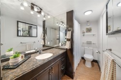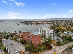 Wake up to breathtaking sunrises! Enjoy your morning coffee on the balcony of this south-east facing condo. You will be gifted beautiful views of the Inner Harbour, Laurel Point, Olympic Mountains and the Ocean. This unit offers two spacious bedrooms and tastefully renovated kitchen and bathroom. With a Walk Score of 85, you're only minutes away from parks, groceries, shops and all kinds of restaurants in the area. Across the street is the scenic Songhees waterfront walkway! Walk to Spinnakers Brewpub, Boom+Batten, or the Westbay Marine. This location is minutes from downtown Victoria by car, bus, or bike; and a direct bus ride to UVic or Tillicum Mall, offering the perfect blend of tranquility and convenience. Bring your beloved pet too! This building is pet friendly :). Amenities include secure underground parking (EV roughed-in), storage unit, kayak/canoe storage, fitness room, workshop, carwash station and rec rooms.