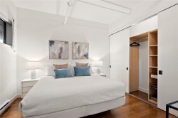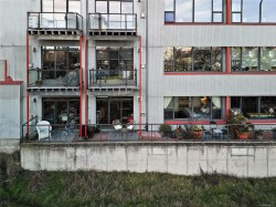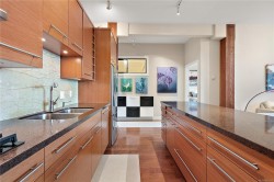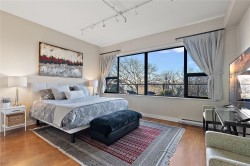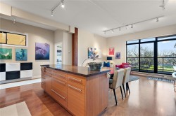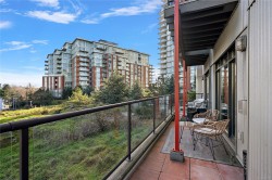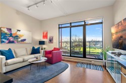Welcome to "The Edge" in Vic West where city and nature intersect. This coveted steel & concrete building features just 48 urban loft-style residences, each offering open concept layouts, 10' ceilings & architectural character including exposed fir posts & expansive windows that fill the space w/ natural light. Unit 107 has undergone a full custom high-end renovation including wood floors, heated tile floors in bathroom plus bamboo cabinetry, gas range, sub-zero freezer & stainless appliances in the incredible oversized chef's kitchen. Both large bedrooms have custom closet systems. Plenty of extra storage in pantry area w/ in-suite laundry & on same-floor storage unit. Enjoy peaceful views of Saghalie Park from your 32' long patio, secure underground parking, bike storage, BBQs permitted & pets welcome (no size restrictions!). All this located in the heart of it all - just a 5 minute cycle or 20 minute walk to downtown Victoria & steps to the beautiful waterfront Songhees walkway.