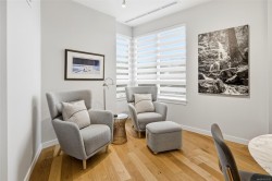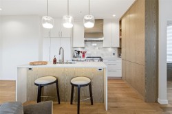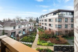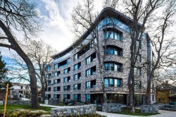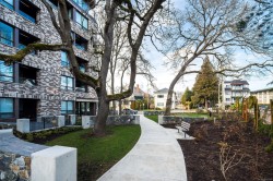 Discover a residence of quiet sophistication within Bellwood Park, situated in Victoria’s historic Rockland neighborhood. This premier third-floor home is enveloped by a canopy of Garry oaks, offering a bright Southeast exposure and elevated privacy. Spanning 1,267 sq. ft., the interior is defined by nine-foot ceilings and a gracious layout that includes two bedrooms, two bathrooms and an office. The kitchen serves as a refined culinary center, featuring a professional Wolf gas range and integrated Fisher & Paykel appliances. An impressive 188 sq. ft. terrace extends the living space outdoors, thoughtfully equipped with built-in heaters and gas connection for year-round use. Residents benefit from secure underground parking, a dedicated storage locker, and a premier location just steps from the Art Gallery, Government House, and the Dallas Road waterfront. Experience a lifestyle defined by quiet luxury and timeless character.