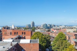 LIVE THE DOWNTOWN LIFESTYLE AT “THE VOGUE” Where heritage charm meets modern convenience.This 2006 heritage conversion set in the heart of Old Town Victoria truly has it all.2 bd, 2 bth, 2 level penthouse loft blends contemporary design with striking old-growth timbers, creating one-of-a-kind living experience.Main living is open concept with impressive 21 ft ceilings & cozy gas F/P.The stylish kit features lots of cupboard space, stone c/tops, S/S appl, gas range & secret pantry!4 pce bth with cheater to 2nd bd overlooking the old buildings.Spacious balcony with gas hook up, perfect for entertaining, enjoy views towards the bridge & distant Sooke Hills.Upper level offers huge primary open loft style bd with lovely views, build-in wardrobes & 3 pce bth.Bring your furry friends, u/ground parking, bike & storage locker, fab common rooftop deck!This sought-after building is within the historic d/town core for Fan Tan Alley, Market Square, shopping/dining/entertainment!Car-less lifestyle!