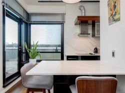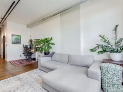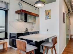 Stylish one-bedroom corner unit with an expansive private terrace! Located in the Jukebox, a quality steel-and-concrete building. This home features an industrial vibe with exposed ductwork and concrete walls. Features include 10 ft. ceilings, hardwood floors, quartz countertops, premium stainless appliances, and in-suite laundry. Enjoy BBQs, and gardening from your spacious terrace. Building amenities include a fully equipped gym and a serene third-floor meditation garden exclusively for residents. Ideally situated in Harris Green on the edge of vibrant downtown Victoria, with an exceptional 98–99 walk score—steps to the Inner Harbour, Beacon Hill Park, restaurants, cafés and shops. Close to bike lanes and bus routes. Includes a secured underground parking stall, storage locker, and allows two pets. Enjoy all the convenience of living at the Jukebox!!!