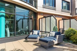 Welcome to The Jukebox – Live in style in this 5th-floor 1-bedroom condo in a solid steel-and-concrete building. South-facing floor-to-ceiling windows flood the space with natural light, highlighting industrial touches like exposed ductwork, concrete walls, hardwood floors, quartz countertops, and premium stainless steel appliances. The well-designed layout features frosted glass sliding doors, a spa-inspired bathroom with a ceiling rain shower and in-suite laundry. Enjoy amenities like a fully equipped fitness center, bike storage, and shared zen garden. With the remaining balance of the 2-5-10 New Home Warranty and a prime location steps from dining, shopping, and all downtown has to offer, this condo blends style and convenience.