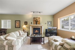 NOT A STRATA! Welcome to this beautifully maintained 3-bedroom, 2-bath home in the sought-after Stoneridge neighbourhood just steps to Eagle View Elementary and a quick walk to Victoria General Hospital. Move-in ready, this home offers peace of mind with major updates already completed, including a new roof (2024), fresh exterior paint, and upgraded appliances. The main floor features a bright, formal living and dining room with a cozy gas fireplace, a spacious kitchen with abundant counter space, and a breakfast nook with sliding doors that open to the private back patio—perfect for everyday living and entertaining. A convenient 2-piece bath and access to the single-car garage (with central vac) complete the main level. Upstairs, you’ll find three generously sized bedrooms and a 4-piece bath. Storage is no issue with a full crawlspace spanning the footprint of the house, plus extra driveway parking for two vehicles.