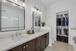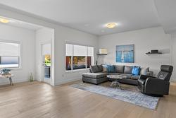 Location and lifestyle—this home truly has it all! Nestled in the highly desirable community of Sonoma Pines, this stunning walkout rancher with partial lake views offers both comfort and convenience. The open Mojave plan features a spacious kitchen with a large center island, sit-up bar, updated lighting, walk-in pantry, and newer stainless steel appliances. An elegant stone fireplace & engineered hardwood floors grace the main living space, filled with natural light from a wall of windows showcasing picturesque views. Wake up with coffee or unwind with a glass of wine on the extended deck with glass railings, ceiling fan, and gas hook-up. The primary bedroom boasts a luxurious 5-piece ensuite with dual vanities, WI shower, & spacious WI closet. A versatile second bedroom/den, full bath, and laundry with new washer and dryer complete the main level. The recently renovated lower level features a large family room with beautiful engineered flooring, a stylish feature bar with two wine fridges, two additional bedrooms, full bath, & ample storage. Step outside to a private backyard with a cedar arbor,Perfect for relaxing or entertaining. The heated double garage includes an EV charger and Pro Slat Wall system for organization. Sonoma Pines offers amenities including a clubhouse, gym, library, billiard room, and a social room with rentable full kitchen. Secure RV parking is also available. Located close to Two Eagles Golf, wineries, shopping & LAKE. No PTT or speculation tax.