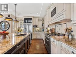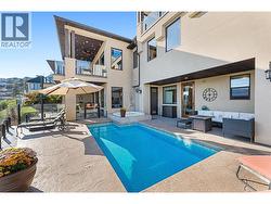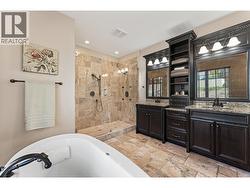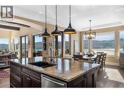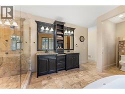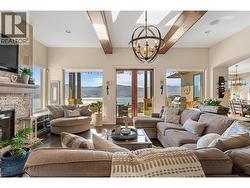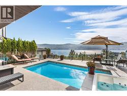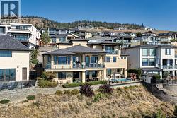 Set above Okanagan Lake in Lakeview Heights, this West Kelowna home offers the warmth and character of a Mediterranean-inspired villa, subtly echoing the relaxed hillside homes of Tuscany. Just minutes from the Westside Wine Trail, it feels connected to the surrounding vineyards, with natural stone, rich wood detailing, and sunlit rooms that open to the lake. On the main level, timber beams, textured walls, and a stone fireplace anchor the great room, where French doors lead to a covered lakeview patio with wood-inlay ceilings, infrared heaters, and space for relaxed dinners outdoors. The kitchen features hardwood floors, granite countertops, a contrasting island with seating, timeless cabinetry, and Bosch and Bertazzoni appliances. The entire upper floor is devoted to the primary suite, offering two walk-in closets, a spa-style ensuite with heated travertine, soaker tub, and walk-in shower, plus a private covered balcony with lake and valley views. On the walkout level, a generous recreation room, custom bar, and direct access to the pool terrace make entertaining effortless, from afternoon swims to evenings in the hot tub or around the firepit. A self-contained studio suite on the lower level adds flexibility for extended stays, or multi-generational living. Manicured landscaping, water features, an oversized double garage with abundant storage, and a convenient tiled dog wash complete a home that blends classic Mediterranean detailing with the relaxed Okanagan lifestyle. (id:27)