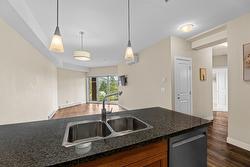 Experience elevated Okanagan living in the 4th floor, 2 bed, 2 bath higher unit at Copper Sky one of West Kelowna’s most sought-after building community Higher floor to capture sweeping lake views, this beautifully appointed home offers the ultimate blend of comfort, style, and resort-style amenities. Step onto your private, covered spacious deck to enjoy morning coffee or evening wine while soaking in panoramic vistas. With a built-in BBQ hookup, it's also an ideal space for effortless outdoor entertaining. Inside, high-end finishes include granite countertops, custom cabinetry, and stainless steel appliances. The open-concept layout features rich laminate flooring throughout the main living areas, while both good size bedrooms boast new vinyl plank flooring with extra underlay for added soundproofing and comfort. The spacious primary suite offers a walk-in closet and a spa-inspired ensuite with a soaker tub, while the second bedroom and bathroom are equally inviting, modern, and bright. Residents of Copper Sky enjoy access to a world-class amenity center, featuring a heated outdoor pool, hot tub, sauna/steam room, fitness center, clubhouse, games room, and courts for tennis, basketball, and pickleball. Vacation everyday, minutes to golf course, wineries. Whether you're looking for a full-time home, or an investment opportunity as AIRBNB rental ( $51,711 Airbnb income in 2025) pets 1 dog, 1 cat allowed, 1 parking and 1 storage, NO PTTax, quick possession !