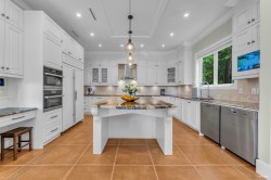 First time on the market, this masterfully crafted custom residence blends timeless elegance with exceptional quality and everyday convenience. Ideally located just steps from West Vancouver Secondary, the home is privately nestled behind lush hedges & a sleek gated entrance. Inside, soaring coffered ceilings, detailed millwork, and expansive windows flood the space with natural light. The upper level offers four spacious ensuite bedrms, perfectly suited for family living. The lower level features a home theatre, sauna, ample storage, and a 2 bedroom + den suite, ideal for in-laws or added income. Additional highlights include radiant heating, two-car garage & a beautifully landscaped garden retreat. Rare opportunity near top-ranked schools & community amenities.