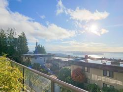 Fabulous water views from Lions Gate to UBC, this large 2 Level 2 Bedroom plus Den suite in Panorama Gardens has everything you need to live life well. The main level consists of a kitchen with stainless steel appliances, bamboo cabinets, overlooking dining/living area with Italian hardwood floors and access to large covered sundeck. The lower level features a primary bedroom with custom design walk-through closet and quartz counter top in full ensuite, a second bedroom, full bath, laundry room, den/office, and in-suite storage area. Also includes a large storage locker plus 2 parking stalls right next to entrance. All of this is within a well-run strata with a tennis court, in-door swimming pool, lounge, and gym in the club house. Pets and Rentals allowed.