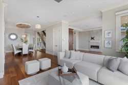 Soak in spectacular city & ocean views from this breathtaking 5bed, 7bath custom luxury home in prestigious Queens/Dundarave, built in 2014 with impeccable craftsmanship. Featuring rich walnut hardwood floors, stunning custom millwork, and an open-concept design, this architectural gem offers a chef’s kitchen with top-tier Wolf/Sub-Zero appliances and a separate spice kitchen. Soaring ceilings flood the space with light and frame the incredible views. Enjoy year-round comfort with A/C, host in style with a covered outdoor lounge, and take advantage of a legal 1bed suite for guests or income. Bonus perks include a 2car garage with lane access, guest parking, and a rare ultra-reinforced concrete & steel safety shelter/storage. This one of a kind residence won’t last, schedule a private tour!
