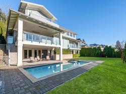 Exquisite Ocean Vista!!!A high-end luxury house in the sun-drenched West Bay, offers panoramic city, ocean, and coastline views. This luxurious 6,200 sq ft residence spans three levels, featuring a master suite with sitting area, fireplace, spa-like ensuite, and elegant wardrobe, plus four additional ensuite bedrooms and six marble-accented bathrooms. Amenities include a paved driveway to a motorcourt and oversized garage, custom millwork, oak and marble floors, radiant heating, LED lighting, and smart home automation. The property boasts a modern kitchen with high-end appliances, a family room, and opens to lush grounds with a heated veranda, BBQ, pool, and hot tub. Lower level includes a theatre, gym, and 2 bedrooms. Best West Bay Elementary Catchment.Close to Top private schools.