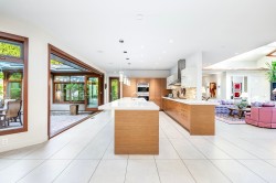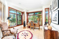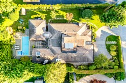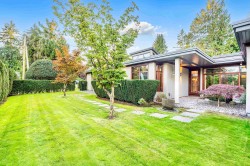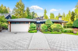 A masterpiece of modern luxury design, this 4,500 SF (Plus garage 488 SF) rancher by architect Trevor Euley blends architectural elegance with resort-style living. Set on a 14,400 SF impeccably landscaped lot, it features a soaring atrium living room, luminous dining with wine lounge, and a European walnut kitchen with state-of-the-art appliances. Accordion glass walls open to outdoor dining, kitchen, fireplace lounge, pool and spa. The private primary wing, past a serene zen garden, offers a spa-inspired ensuite and dressing area. A separate office with deck and flexible lower level for gym, nanny or media complete this rare offering near Capilano Golf, Hollyburn Club, Park Royal & top schools.