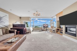 Architectural masterpiece in prestigious Rockridge! This 5,748 sq ft contemporary residence on a 12,633 sq ft south-facing lot captures breathtaking ocean, city and sunset views from all levels. Built with concrete, steel and glass, it showcases soaring ceilings, floor-to-ceiling windows, radiant heat, A/C, and a state-of-the-art smart home system. Features 5 beds, 7 baths, gourmet kitchen with top-tier appliances, media room, wine cellar, and elegant indoor-outdoor flow. Resort-style pool, spa, terraces, and landscaped gardens offer ultimate privacy. Close to Caulfeild Elementary and Rockridge Secondary.
