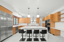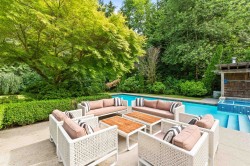 Exceptional 6 bed, 7 bath West Coast Modern estate on a rare 30,000 sq ft south-facing lot in Lower British Properties. Designed by architect Mason Kent, this home blends timeless architecture w/ refined luxury—featuring dramatic beams, vaulted ceilings, skylights & handcrafted wood windows. The upgraded kitchen, plus newly added wok kitchen, flows to a covered, heated patio & private backyard retreat w/ pool, hot tub, lawn & lush landscaping. Upstairs offers 4 ensuited bedrooms, including a renovated primary suite w/ spa-like bath, custom vanity, walk-in closet & balcony. The lower level is built for entertaining with a wine room, wet bar, steam room, media & billiards areas, & walkout access to the pool. Radiant heat, Lutron lighting, 3 car garage. Near parks, top schools & Hollyburn CC.