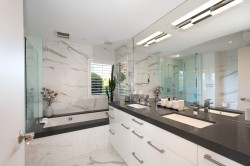 Completely unique! Stunning 3800 sq/ft treasure nestled into a totally private sun drenched lot offering gorgeous ocean views in a setting that is simply magical. Spectacular, landscaping, rock work and tranquil ponds wrapped around this exquisitely crafted and completely renovated custom home with impeccable attention to detail and incredible quality throughout which is a feast for the eyes. Impressive architecture shines, with spacious open rooms, wine cellar, vaulted ceilings, skylights and beautiful natural lighting providing a glorious experience to share with friends and family. Private elevator, incredible indoor/oudoor living with huge covered outdoor patio built in bbq and 1700 sq/ft deck and spa/ tub provide the most magnificent tranquil lifestyle that is rare! Very special!