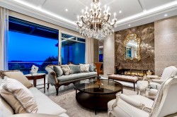 British Properties Estate newly completed, private, amazing city, mountain & harbour views on .636 acre & 14,759 SF on 4 levels. Dual foyer staircases, living/dining areas w/limestone & marble FP, gourmet kitch, quartzite counters, Miele & Sub-Zero appls, bkfst bar & EA, prep kitch, pantry & adj family rm w/limestone & quartzite FP, secondary master, heated terrace, lounge & pool. Mezzanine leads to kid’s lounge/study, laundry, 4 ensuited bedrms w/walk-ins, main master w/walk-in, ensuite, office & 2 priv terraces. Down incl wet bar, lounge & wine rm, exercise, media/theatre, rec-games rm & nanny’s rm, bath w/sauna & steam rm & add’l guest rm, ½-size indoor bsktball court &/or ballet studio, walkway to indoor pool. Elevator, heated drive, Crestron, AC, HRV & 4-car garage. Beyond impressive!