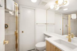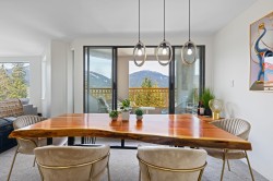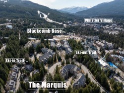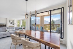 Indulge in breathtaking mountain vistas from every expansive vantage point of this open concept, beautifully renovated two bedrooms suite in the Benchlands! The open layout features two spacious private master bedrooms flanking an open living, dining, showcasing the brand new kitchen with all new appliances, complemented by ample storage, in-suite laundry, and dual balconies offering serene outdoor retreats. Its mountainside location is perfect for hosting friends and family year round. Nestled conveniently across from the ski in/ ski out trail to Blackcomb Mountain, it boasts proximity to the valley trail and an easy walk to the world famous Whistler Village. There is also a complimentary shuttle route to whisk you away to the vibrant village for dining and shopping escapades!