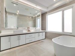 This Contemporary Ocean View Home boasts extremely high-quality construction and many luxury features including residential elevator, A/C, generator, radiant floor heating, hardwood flooring, truly a home personalized to your life. The main level features 11 foot ceiling, 4 bedroom suites plus study, laundry room. The staircase leads you to a spacious and open area open area, perfect for entertaining. 2 large kitchens with high-end appliances, the bifold doors open to the covered patio, blending indoor & outdoor spaces. The basement features sauna, guest bedroom, Wet bar, sitting area. 2 bedroom legal suite with separate access. Low-Maintenance Yard, designed for easy upkeep and enjoyment. Ample parking space at the front and basketball court at the back, providing recreational space.