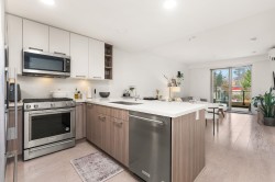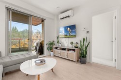 Welcome to BEACHBOROUGH in White Rock by Texor Homes! This great condition 1 Bedroom+DEN, 1 Bath unit is not fronting North Bluff Road and has a sunny West exposure! Relax on your sprawling 228sqft deck w/gas hookup! High-end stainless steel appliance package, designer finishes, laminate and tile flooring, BONUS HEATPUMP and much more! 1 secure underground parking, 1 Bike Storage, 1 Storage locker, pets and rentals allowed. Conveniently located in the middle of both Semiahmoo shopping center and Ocean Park Village.