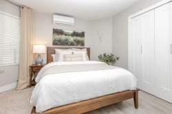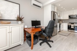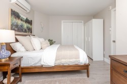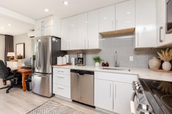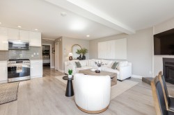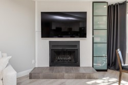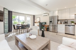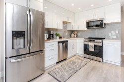 Location is a short walk to White Rock beach and view of the River. Completely renovated 1 bedroom home with spacious, modern open floor plan. Entire building was completely renovated in 2019. Bright white kitchen with quartz counters, stainless appliances, wood burning fireplace and Air Conditioning. Huge patio area with nice easy to maintain garden space, BBQ and view of the river. Building has a common rooftop deck. Home is like new and ready to move in.